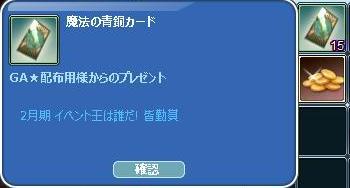 今日はクリニックとお薬&お買い物外出だったので~夜になってからゲームイン 花粉凄いね・・お外に出たら、目にきますよ・・今年・・1日4回な目薬ゲット☆MILUったら・・・ランチャー版の何か不具合あったような?そいつは遭わずに済みましたw2月のイベ王皆勤賞&15Pのご褒美が届いてた♪ピシュルと案内板から、クエは始まります☆キャンディなお魚が釣れましたw 30釣り始めました!っと~書けるのはメンテ前のこと~いっきま~すトラ猫なEVミルウエイは、お肉もアタイも一発成功♪アタイの運転で、旦那様がGIF撮って下さった(*´ω`*)ありがと❤ 編集も、PC|д゜)ノ おつかれサンマ<+ )))><< イベ材料だけで作れた~猫缶EV椅子も、これまた・・お互い一発成功v(。`・∀・。)vィェィ♪夜鯖で光る猫缶だったね~~耐久切れるまで楽しみます♪