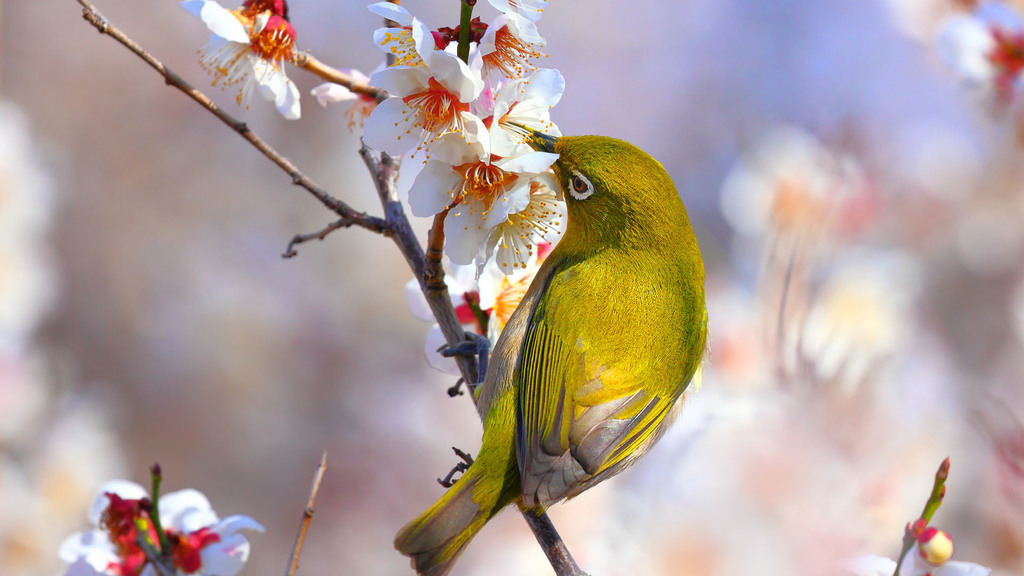 毎年この手の写真を載せると「梅にうぐいす、いいですね!」みたいなコメントをいただくのですが、メジロです!