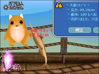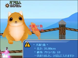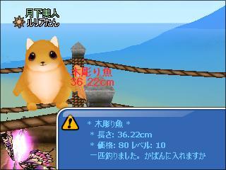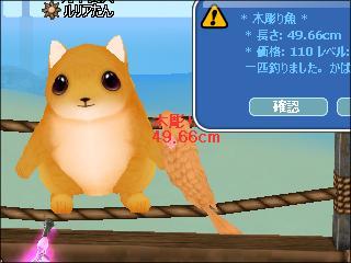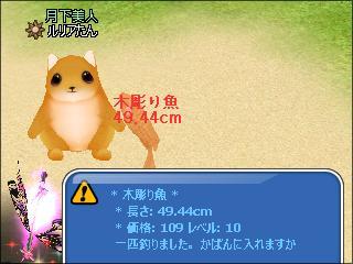 同じ場所でイベント魚釣りをし、下2桁奇数ぞろ目の木彫り魚が4匹と、