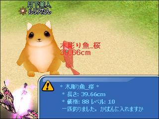 輝く桜ガラス玉では、木彫り魚_桜の下2桁偶数ぞろ目が釣れた^^