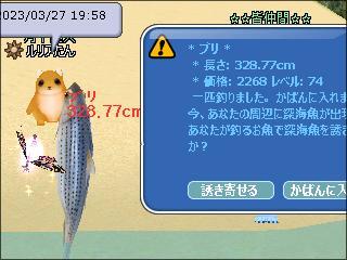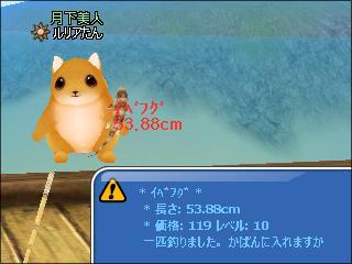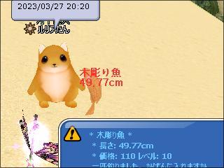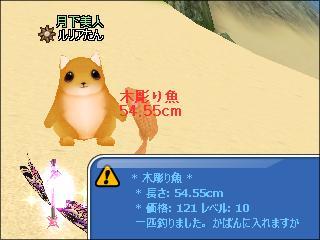 その後、同じ場所でイベント魚釣りをし、木彫り魚の下2桁奇数ぞろ目3匹や、