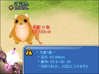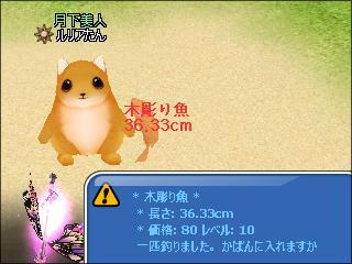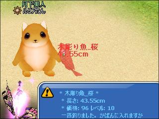 輝く桜ガラス玉では、木彫り魚_桜の下2桁奇数ぞろ目が釣れた^^