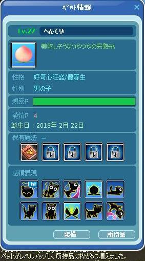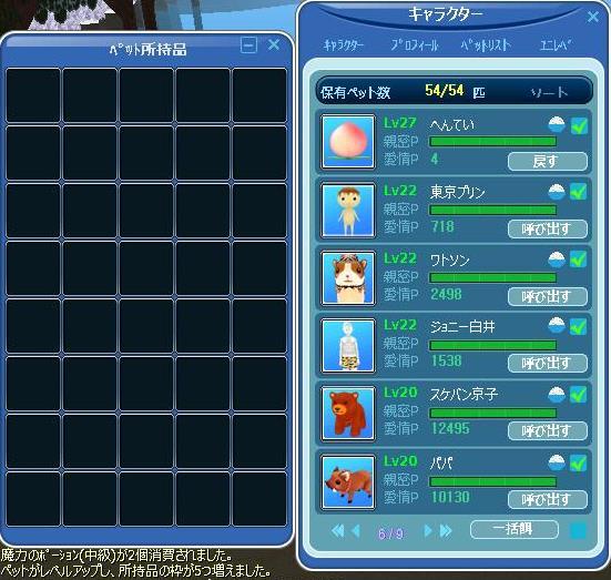 たまたま出して、ペット魔法かけたら、27レベにUPしたので・・慌てて撮ったSSでっすw へんてい見えないねww所持品5枠からSTARTした子が、40枠の力持ちになりました♪ 幸運のガロが12レベにUP♪ うんw、お尻フリフリしてるわなw コヤツは、ちょっと反抗期かもしれない! お仕置き・・・かなw