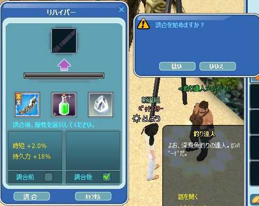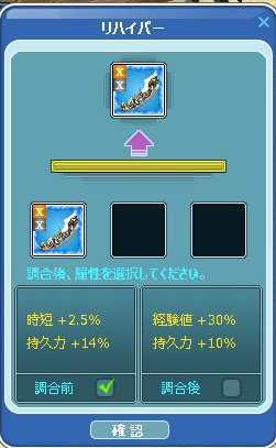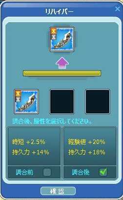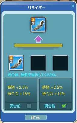 150竿のハイパー属性は、時短+2.0% 持久力18%なので、時短+5.0を期待しました^^