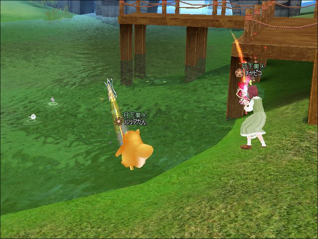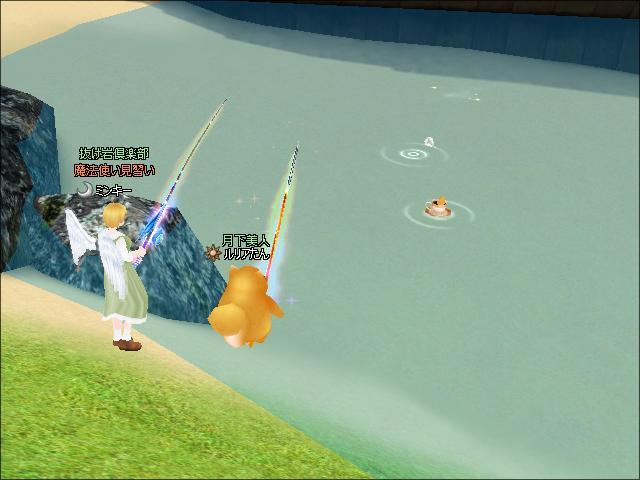 夜、3鯖ピシュル前でギルメンのチャピコさんと釣りをしたわ。