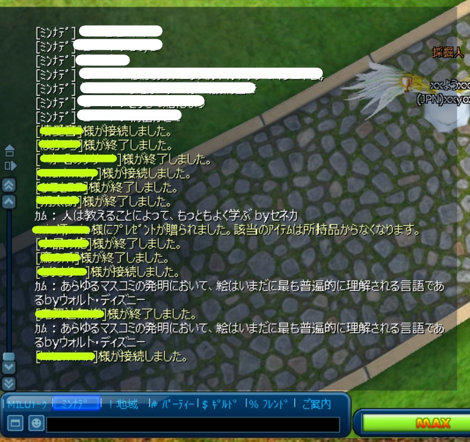 ③赤丸で印したところをクリックして横にチャットウィンドウを広げると、何故か文字まで復活ww