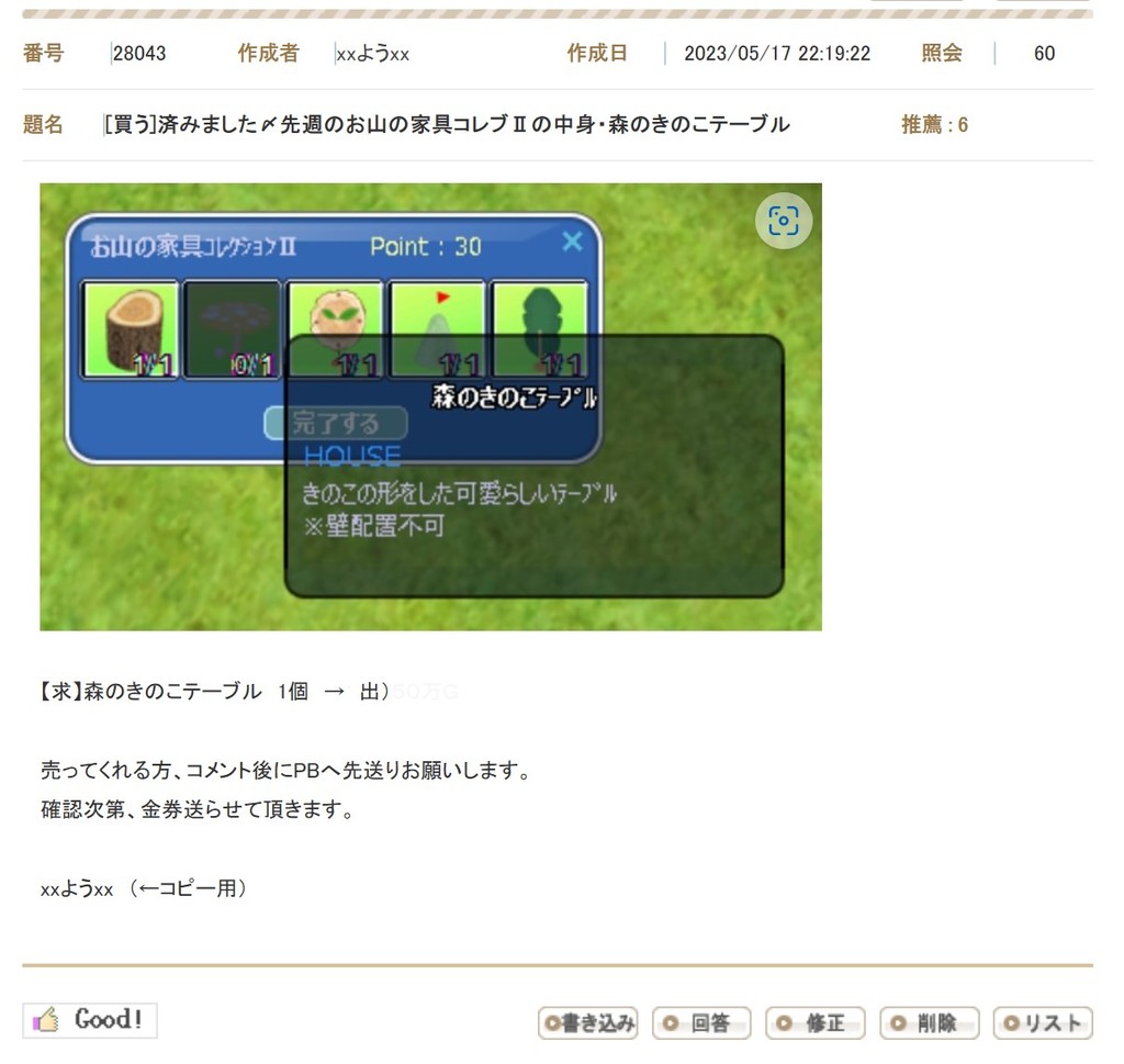 売買掲示板で募集したら、メンテ明けすぐに反応がありましたw