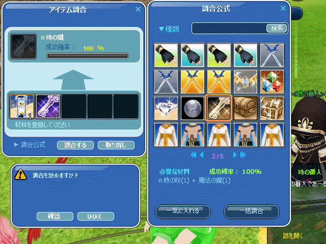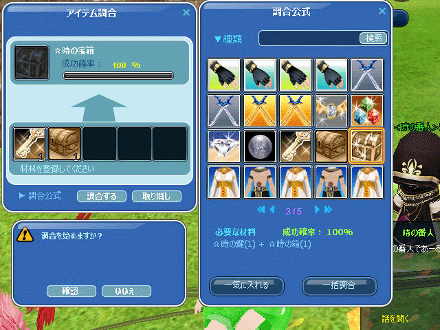 「時の鍵」と「時の箱」で「時の宝箱」を調合♪・・・成功確率100%イイ!(*´▽`*)♬
