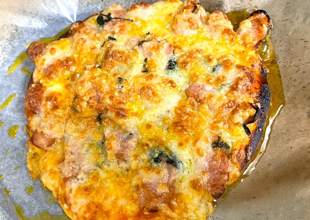 土曜の昼は初めてピザ作りました。
