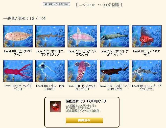 お魚図鑑コンプしましたー^^ |