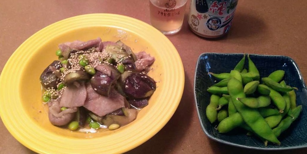 昨夜は、半額で売ってた豚さんの味噌漬けとナスの炒めたのん