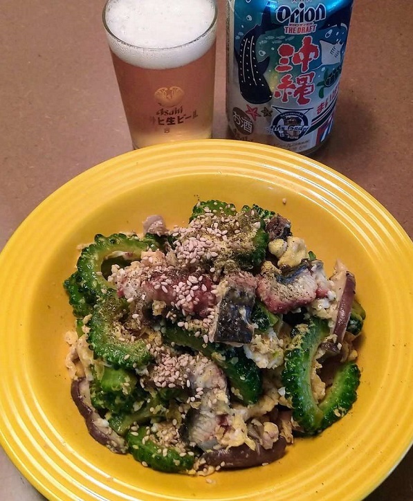 大好きなゴーヤとウナギのチャンプルーを美味しくいただいた(@・`ω・)v☆