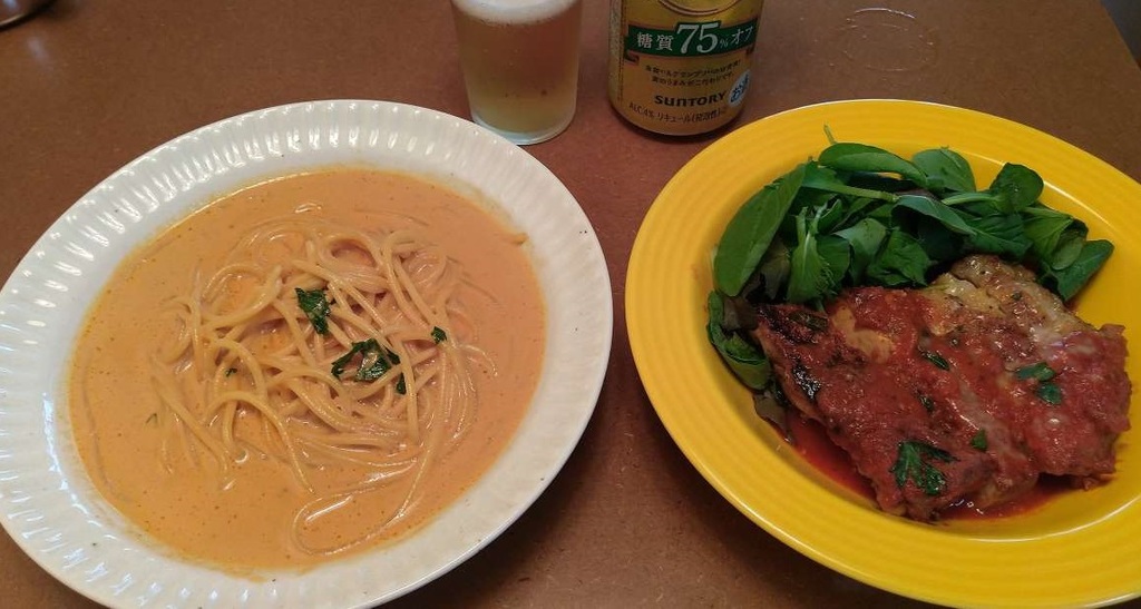 うにのクリームパスタが濃厚すぎて、さっぱり?トマトソースのチキンソテーが箸休めになりましたとさ。