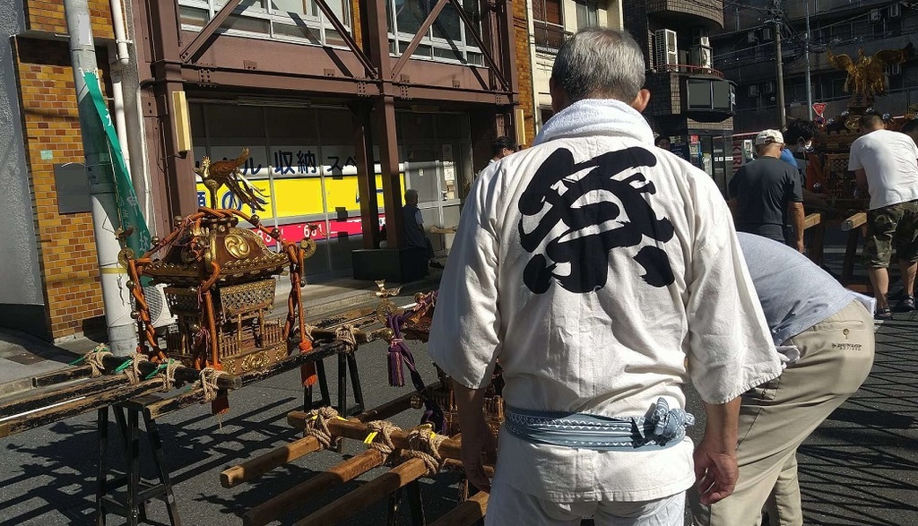 お祭りの準備に余念がない近所のじ~ちゃんたち( ⑉¯ ꇴ ¯⑉ )