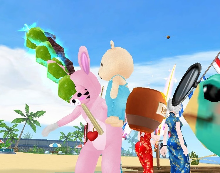 お月見なんで、春のヨモギ餅竿を出したら、即行食いつく うささん1ぴこ? 1羽?