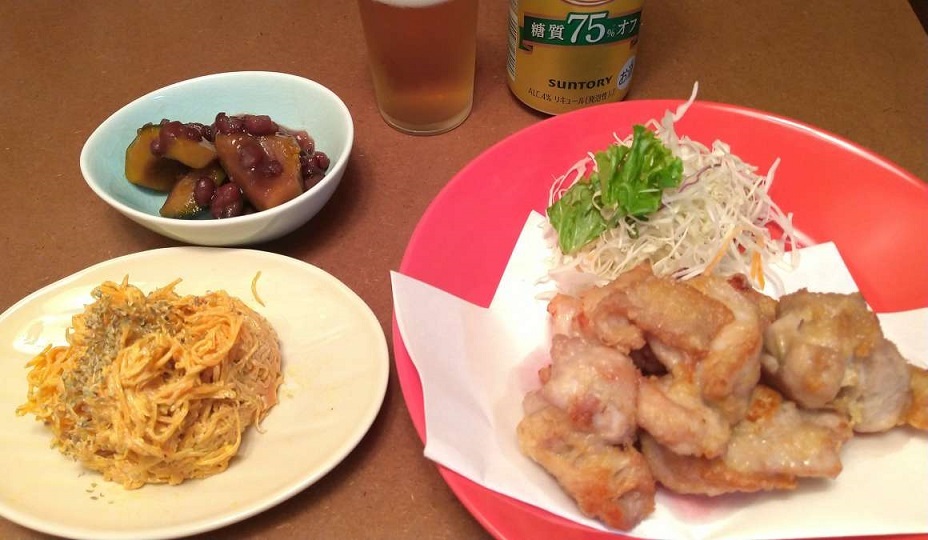 あずきと一緒に炊いたんを作りました!(メインは とり天です<唐揚げじゃないですw