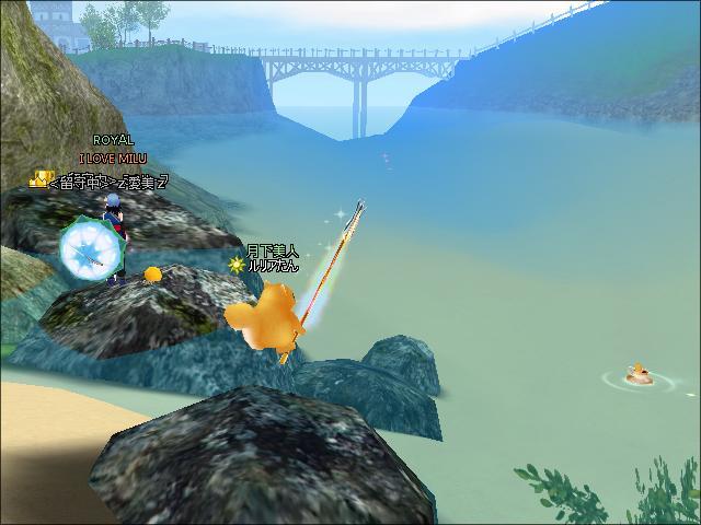 その後、3鯖MILU神社鳥居横でミルとものミルリーフさんたちと釣りをしたわ。