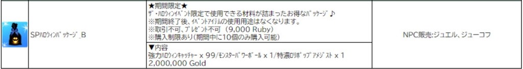 ハロウィンのSPパッケージアイテム以外だと、イベタコ釣り(ハロウィンイベVer.)で入手できるらしい
