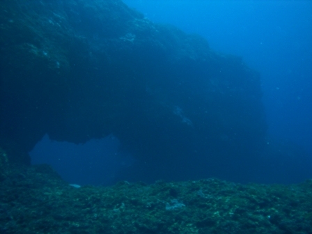 海中は溶岩流で出来た岩が