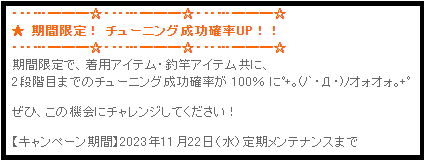 年明けくらいにチューニングキャンペーン来ればいいなーくらいに思ってたんですが