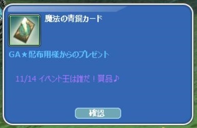 先月のイベ王の皆勤賞・カード15枚!