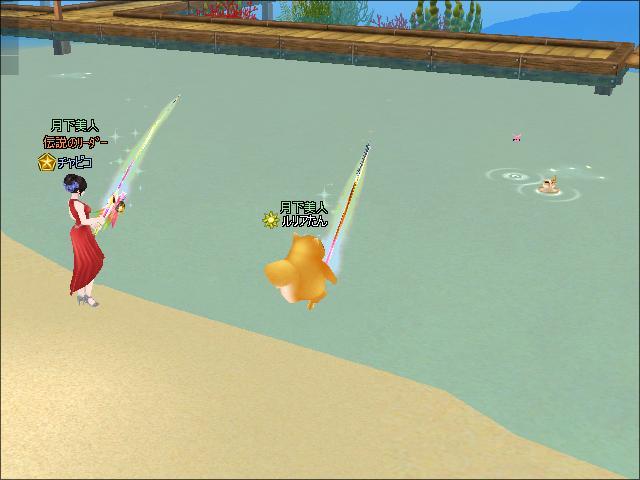 お昼過ぎ、0鯖海岸で、ギルメンのチャピコさんと釣りをしたわ。