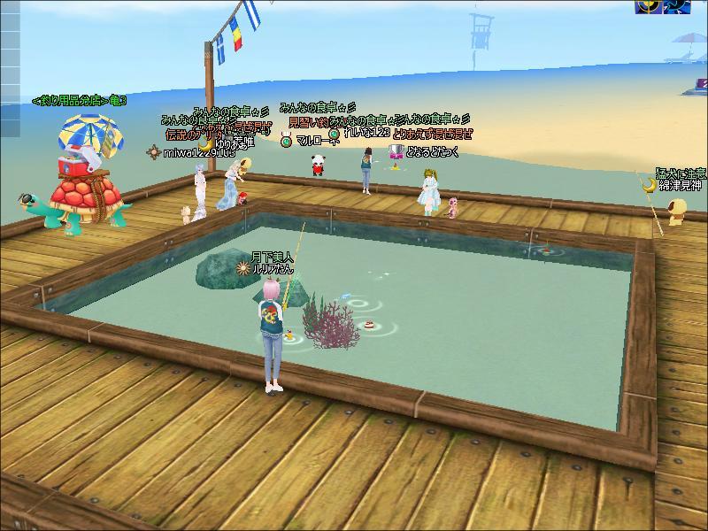 夜、3鯖ラピス付近で元バディのミンキーさんとイベント魚釣りをしたわ。