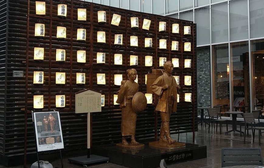 奥のほうに銅像? 現在の小田原生まれやったらしい二宮金次郎様らしい