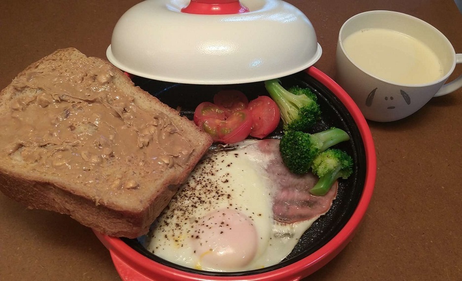 今朝 焼き立てにピーナツバターをがっつり塗って(´~`)モグモグ