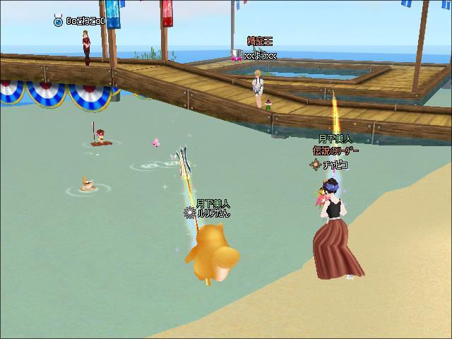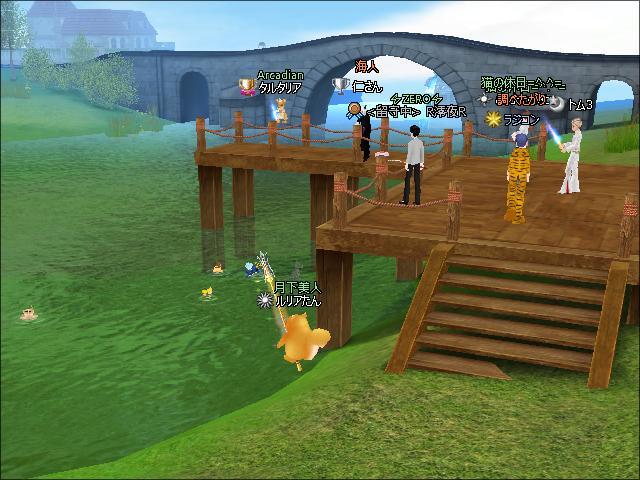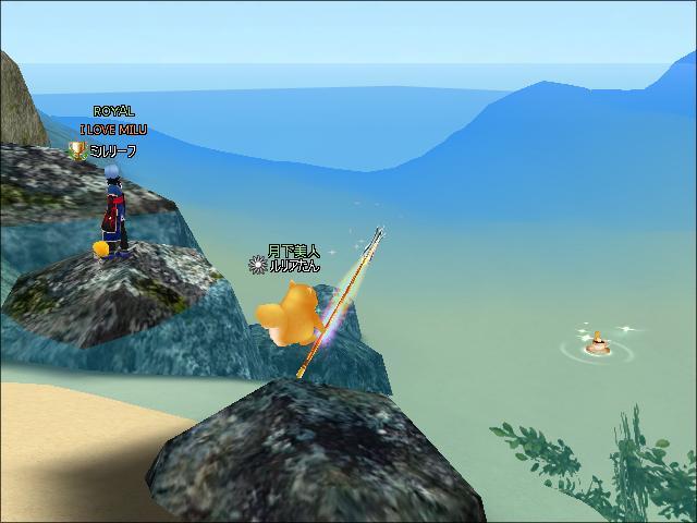 お昼過ぎ、1鯖生け簀付近でギルマスのチャピコさんと釣りをしたわ。