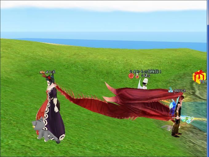 後ろから海獣に食べられそうになってるみたい^^ |