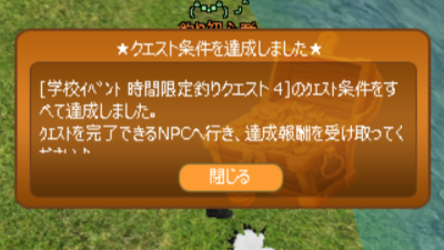 こんにちは。 時間限定釣りクエスト4を達成しました。 やったーーーーーーー!