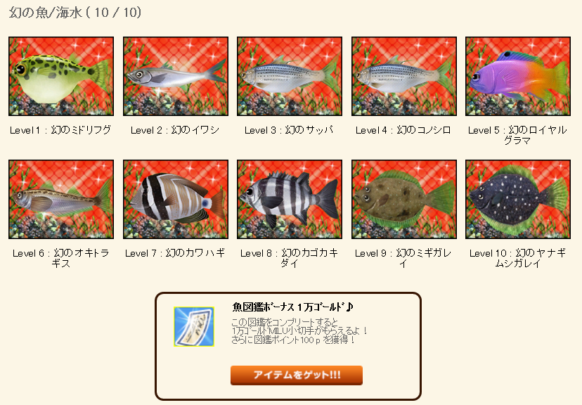 特殊魚は昔終わらせていたので、このレベルの図鑑は全て終わりましたヽ( *´ω`* )/