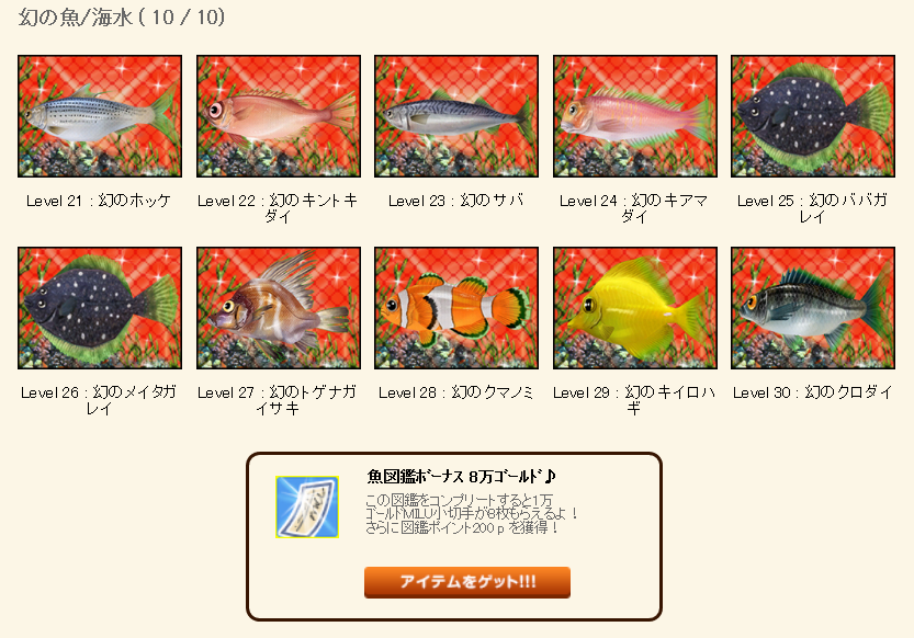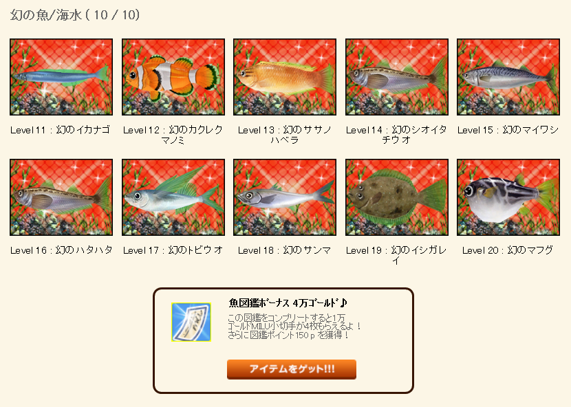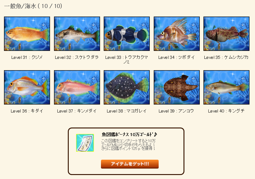 | 魚図鑑完成おめでとうございます(≧∇≦)b |