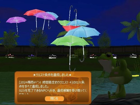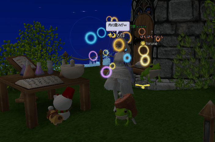 案内板クエ&時限クエが4まで完了(☝ ՞ਊ ՞)☝ウェーイ 池の岩の上に居た仲間と並んでみたw このリップルダンス♪というエモが欲しくて~ 掲示板で見つけたアオガエルコスを2つ買ってしまったw キラドリ調合成功された~ちゅぴちゃんと♪ 肉が重くて動けない…お肉カエルとぉおおお!((´∀`*))ヶラヶラ どう見てもアマガエルなんだが・・アオガエルなんだね! アズさんに頂いたペアのてるてる坊主コス記念撮影❤ エモも付いてない昔のコスだけど、好きですわ♪ありがっちゅ♪