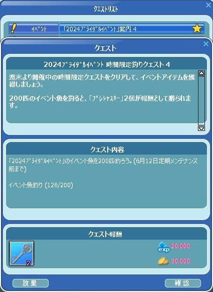 案内板クエ4終わったの~(☝ ՞ਊ ՞)☝ウェーイ 残るは、時限クエ4の・・・少し!終われそう(*`・ω・)ゞデシ!! 月曜日に釣った、イベサメ確定サイズ☆(´∀`*)ウフフ やっと順位がつきました~ヾ(〃^∇^)ノわぁい♪ 賞品のカード3枚ごち❤ イベ王とイベ釣りしかしてないぞぉおおおおおw
