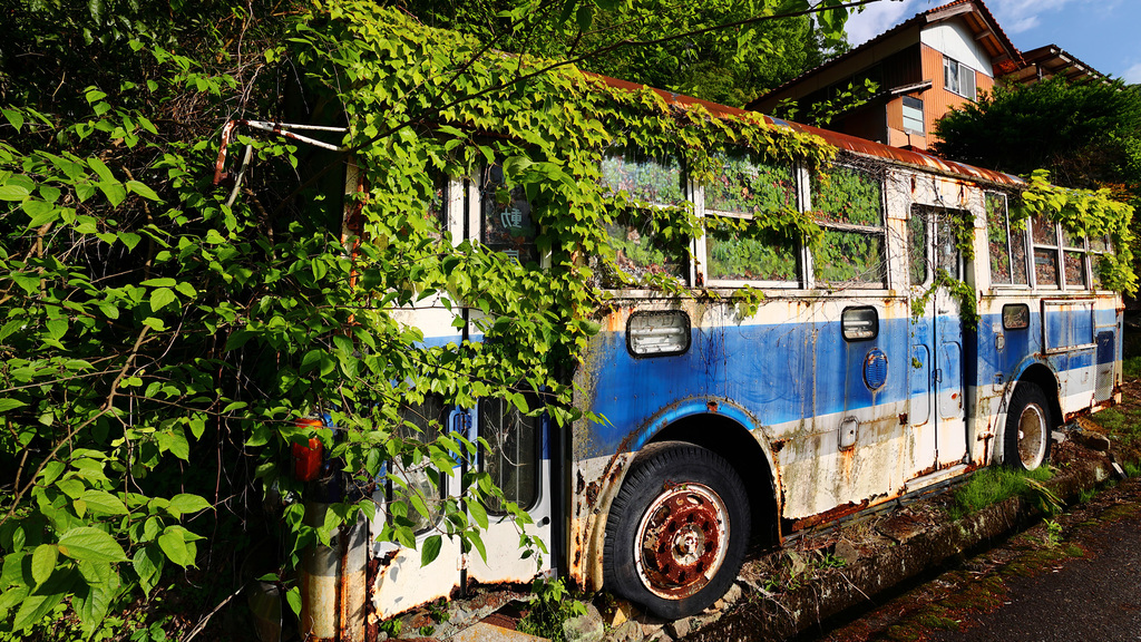 廃バスの状況説明的な写真は撮ってなかったので、昨日のよりは少し引いた写真を。