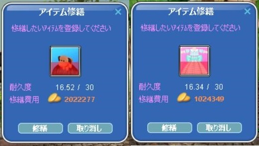 さて、レベ上げキャンペーンもクリアしたことだし 遅ればせながら、時限クエのイベ堀りしましょうか。 …と、その前に 高属性装備を修繕して、封印しなくちゃ。