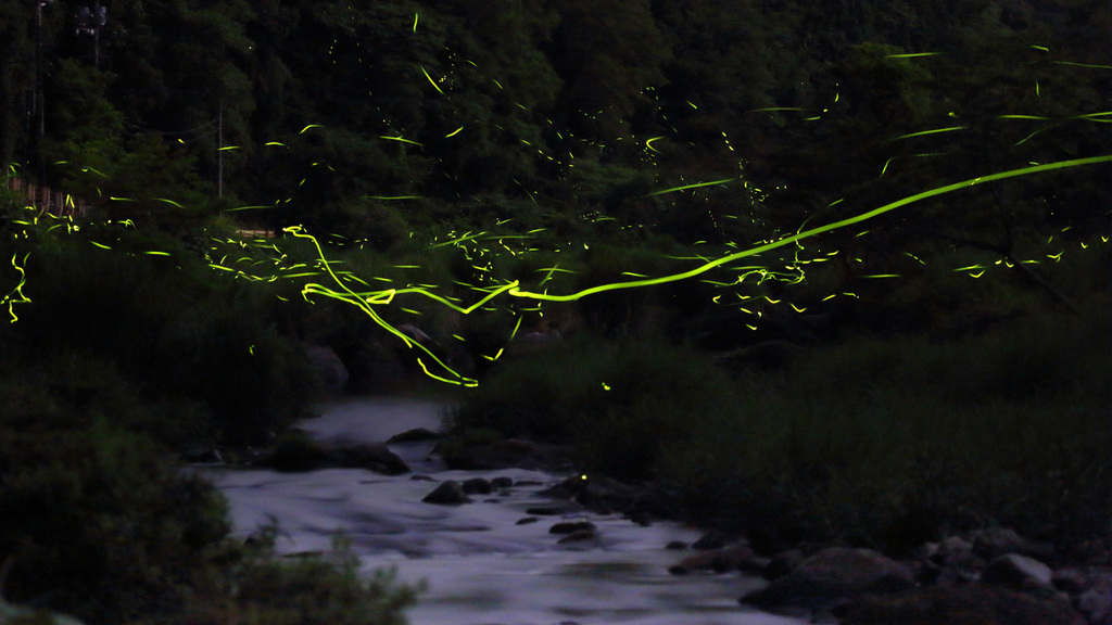 そもそもホタル1匹分の光にしたって、実際に見てる景色としてはこんなに線として見えてるわけでもないんですけどね(笑)
