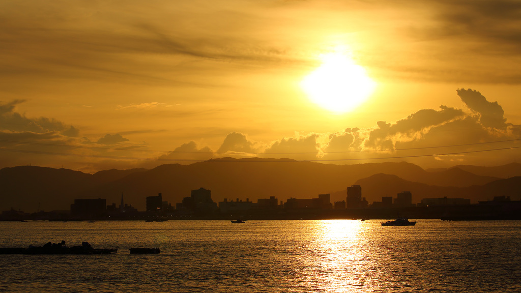 花火までの待ち時間、ついつい撮ってしまう夕焼け空。