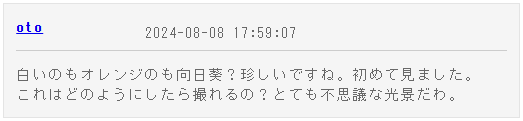 白いヒマワリって珍しいですよね。白いトウモロコシと同じ感覚(笑)