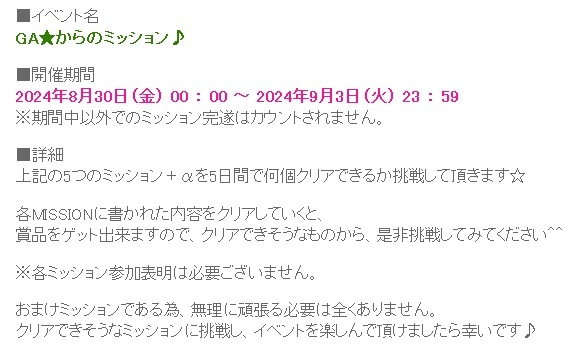 「GA★からのミッション」1日目ですね~