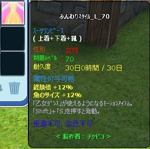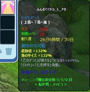 修繕可しておいた「ふんわりスタイル_L_70」をチューンシフトして属性アップした備忘録です。