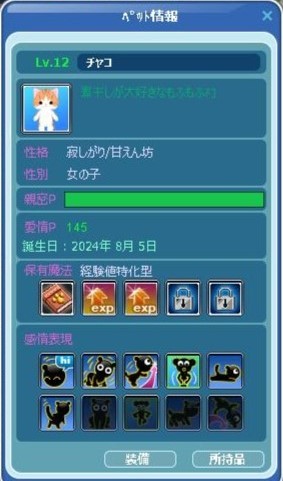一番下の「チャコ」が、丁度2ヵ月目の10月5日に、Lv12 アップしました~^^