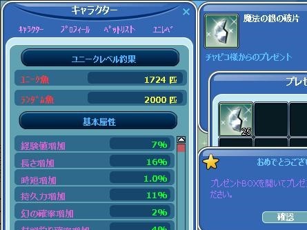 ランダム魚 2,000匹のキリ番達成・・・銀かけ 25個のプレゼントは嬉しい~(*^_^*)