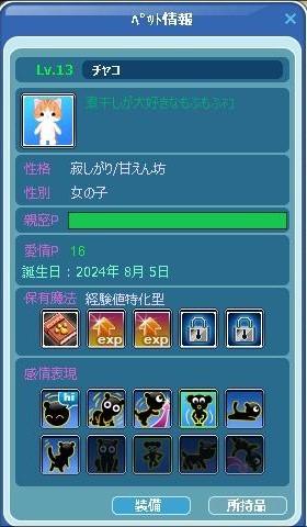 「チャコ」がLv13アップしました~(*^_^*)