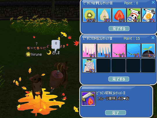 全部2個できた!ヽ(*´з`*)ノ フルーツ目指しての飴は、いっぱい出てたけど…他は皆無! ちゅぴちゃん、追加で飴ありがと❤調合成功おめでとぉおお! ゲスちゃん出たて◯んこ+(人・∀・*)+アリガト♪ 美味しいドリンクになったで~~~www あと、フルーツノートも!! アールさん、貴重な飴とノートまで+(人・∀・*)+アリガト♪ フレさん達の愛で、シャシャも優しかったんだな~きっと! 皆さん、ありがとうございました( *・ω・)*_ _))ペコ お披露目は、お肉とエモって・・また後日に載せますね♪ 昨晩、戦い済んで~帰宅された旦那様 イベクエだけできた^^ ジューシーフルーツイベ2週目のコレブは、2種2冊完成できました♪ 時限クエ4まで終わったぁあああああ! とっても可愛いお客様が!!! いらっしゃい♪ さえこさん、ずいぶん大きく育って!ww メモリーは叩いて大きくしておきますね∑(ノ∀`)ペシッ 明日はメンテの日☆ アタイは定期な通院日w メンテ明けに(*´ω`)o【マタネ♪】o