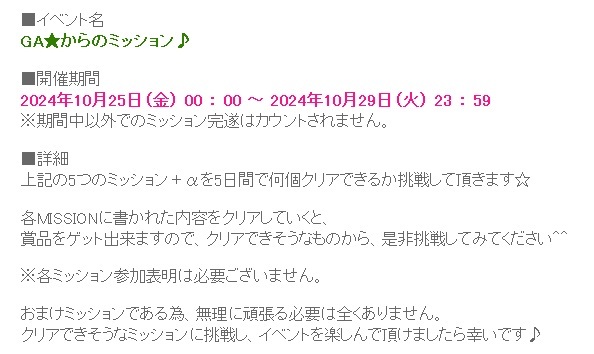 「GA★からのミッション」がまた始まりましたね~イベPPもあって忙しい(笑)