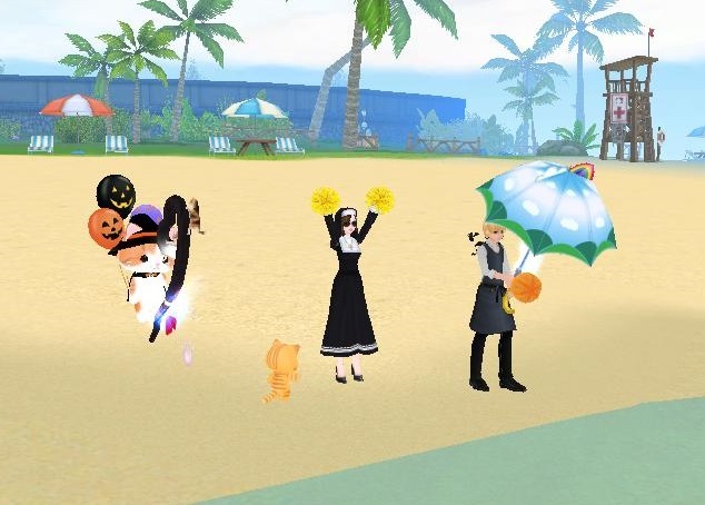 浜辺から!今日の日替わりポンポンは黄!砂と色が似てる!