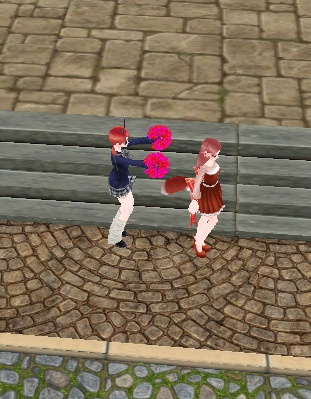 モンテスのところで応援!今日の日替わりポンポンは赤!